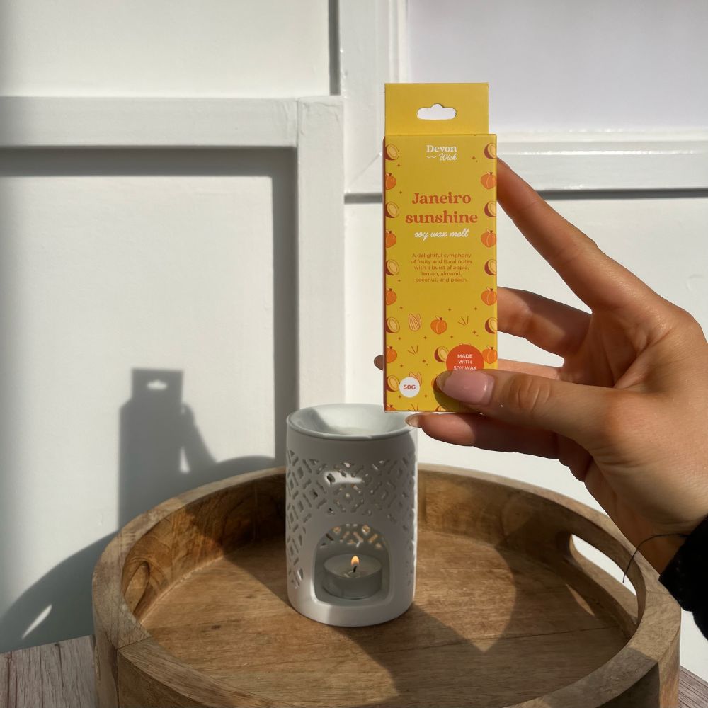 We use as little plastic as possible at Devon Wick. Which is why all of our wax melts are packaged in recyclable cardboard boxes.