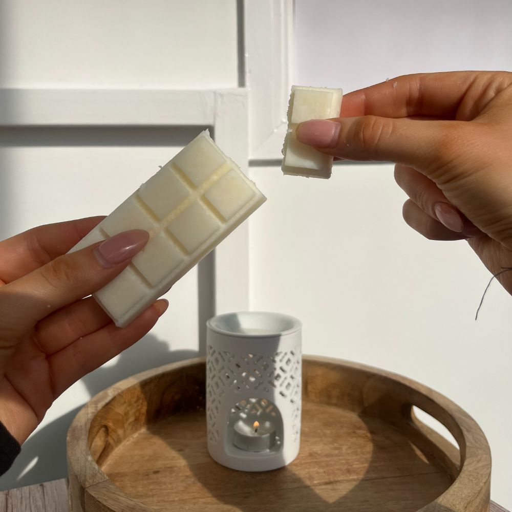 First things first, you need to snap off a piece of your wax melt. Depending on the size of your wax warmer and the strength of the fragrance, one or two squares should suffice.