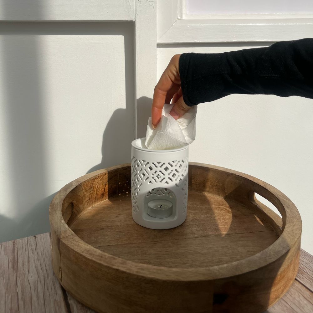 One of the great things about wax melts is the ease to change between scents. Once you've finished with one scent, simply dispose of the melted wax by soaking it up with cotton balls/pads and then switch it up with a new scent.